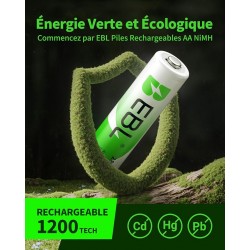 Réduction de Pollution:Les piles rechargeables d'EBL ne contient pas Hg/Cd/Pb, réduire largement la pollution à l’environnement. Une énergie plus verte et plus économique.