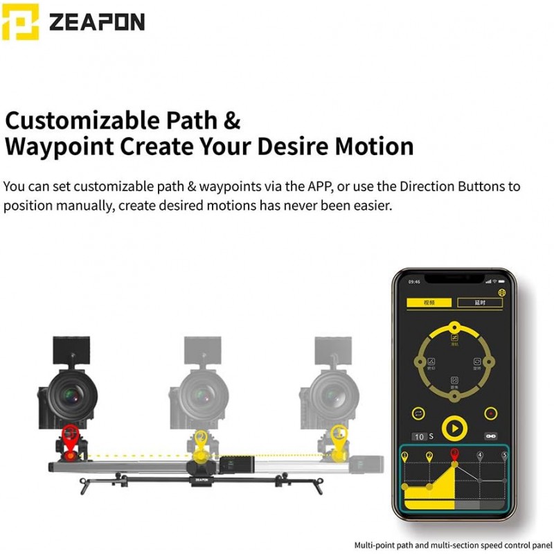 ✔ Le micro 2 motorisé Zeapon dispose d'une application fonctionnelle pour plus de création, comme les points d'accès et les points de guidage personnalisables, fonctionne comme calculateur de timelapse, prévention de la durée et préréglage des paramètres pour une lecture facile, donc il prend en charge la caméra double voie et le contrôle coulissant lorsqu'il est connecté au fil. Synchronisation (Synchroniseur sans fil uniquement séparé).