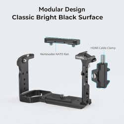 Conçu pour Sony FX30/FX3: La cage FX30/FX3 présente une conception modulaire, comprenant un module de rail NATO et un module de cage en forme de U. Le rail NATO est fixé sur le dessus via deux vis 1/4"-20 et permet de connecter la poignée supérieure XLR d'origine après démontage ; le module de cage en U est fixé via des vis 1/4"-20 des deux côtés et du bas pour éviter la torsion. Le package est livré avec un serre-câble HDMI dédié pour protéger l'interface et assurer la stabilité du signal pendant la prise de vue.