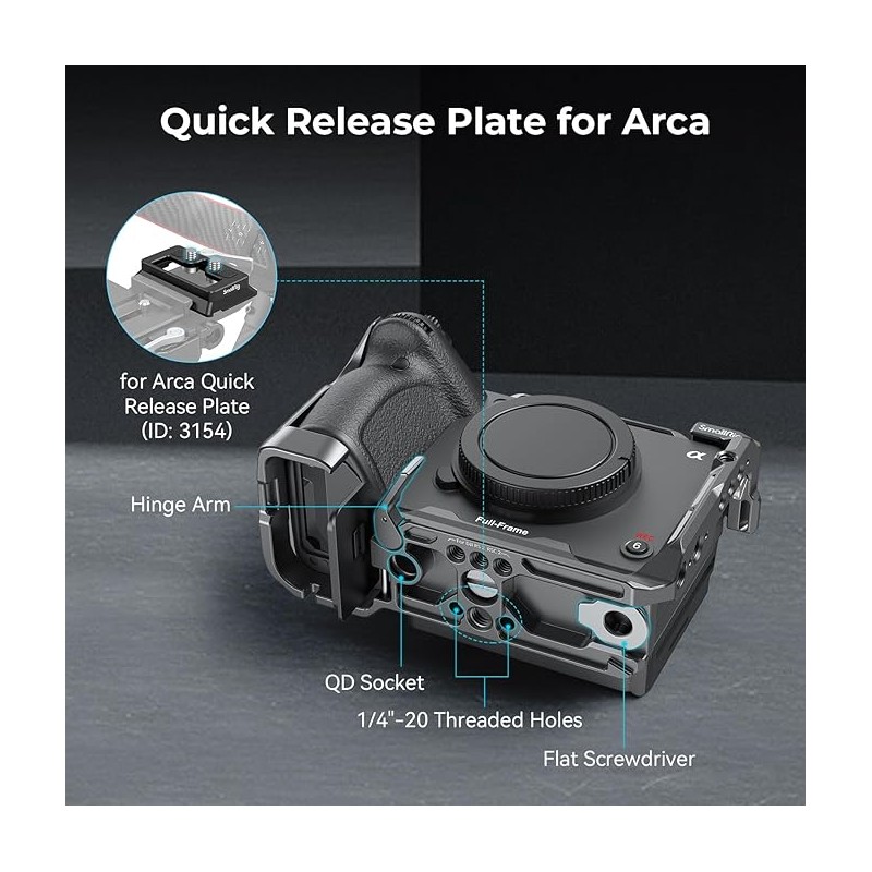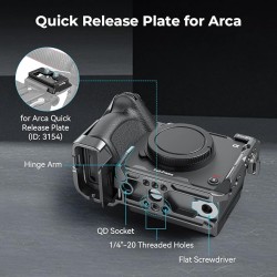 Plaque de Dégagement Rapide pour Arca : La plaque QR en bas est compatible pour DJI RS 2, RSC 2, RS 3, RS 3 Pro, plaque de dégagement rapide (coussinet d'augmentation de hauteur) et Plaque pour Arca 3154. La cage comporte également des trous de sangle sur les deux côtés et le bas, qui sont compatibles avec la Dragonne 3848, la Bandoulière PSC2428, etc. La prise QD inférieure pour installer la bandoulière QD et une clé magnétique sont incluses pour un démontage et un montage faciles.