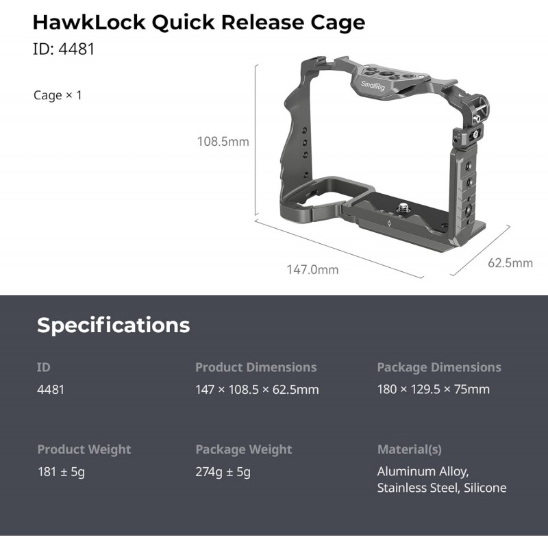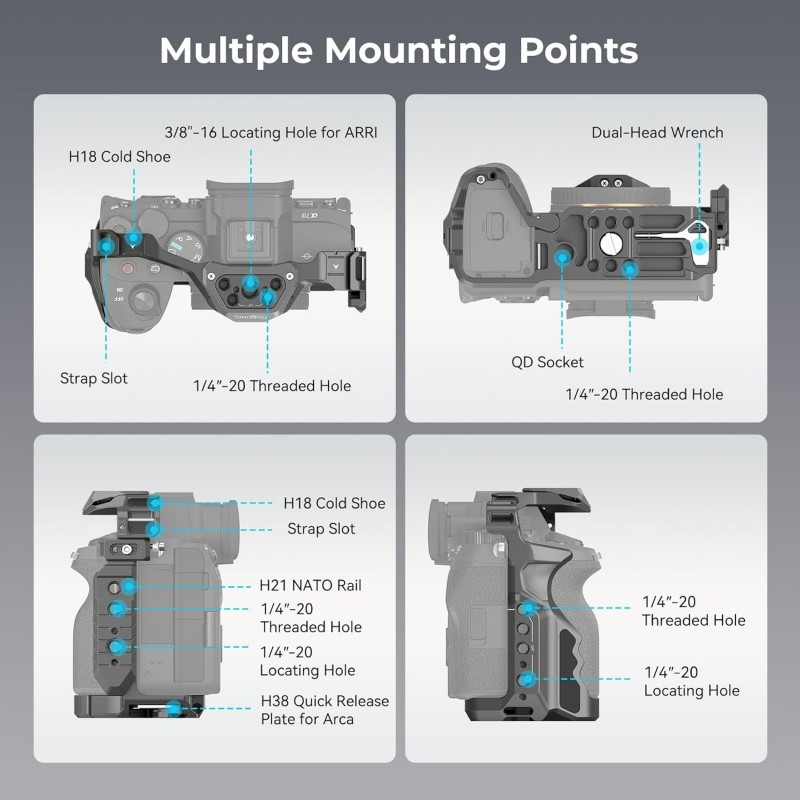 Compatibilité: La cage à dégagement rapide SMALLRIG 4481 est conçue pour les Sony Alpha 7R V/Alpha 7 IV/Alpha 7S III/Alpha 1/Alpha 7R IV afin de fournir des points de montage et une protection complète.