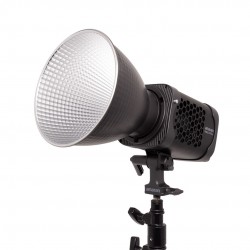 Offrant jusqu’à 32 500 lux à 1 mètre (sans accessoire) pour une puissance lumineuse maximale de 545W, ce projecteur COB délivre l’une des performances les plus élevées de sa catégorie. Son angle de faisceau natif de 85° permet une diffusion plus homogène, limitant les hotspots lors de l’utilisation de modeleurs compatibles via sa monture métallique Bowens Mount full-size.