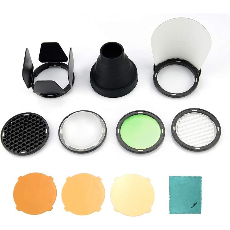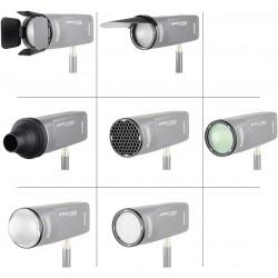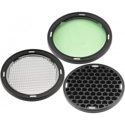 AK-R1 comprend sphère de diffusion, filtre de couleur, nid d'abeille, snoot
